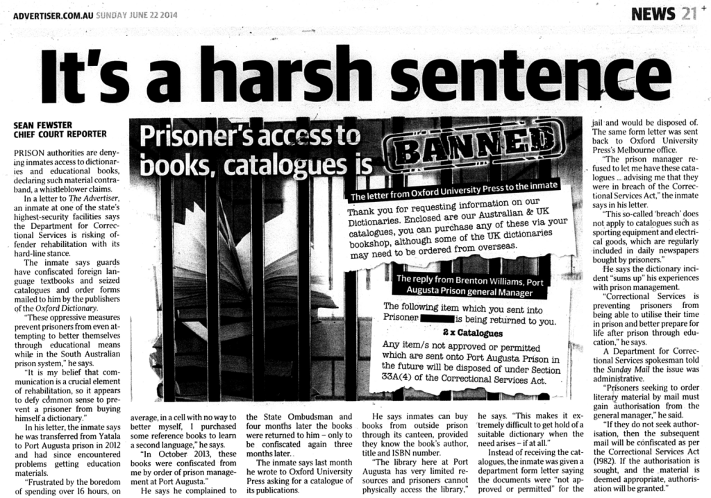 - ‘Australia’s first national newspaper – for prisoners by prisoners’ – Listen to podcast here (13 September 2024).